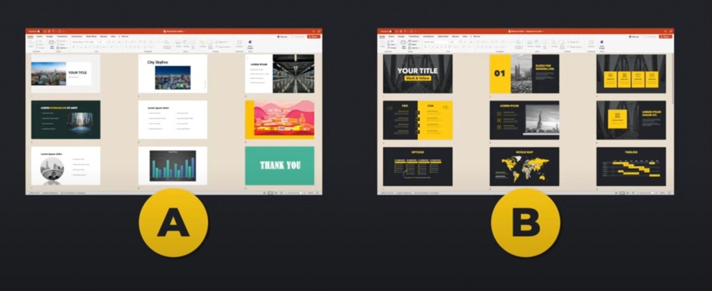 - use dark backgrounds (YOU are the presentation; PP is your visual aid)