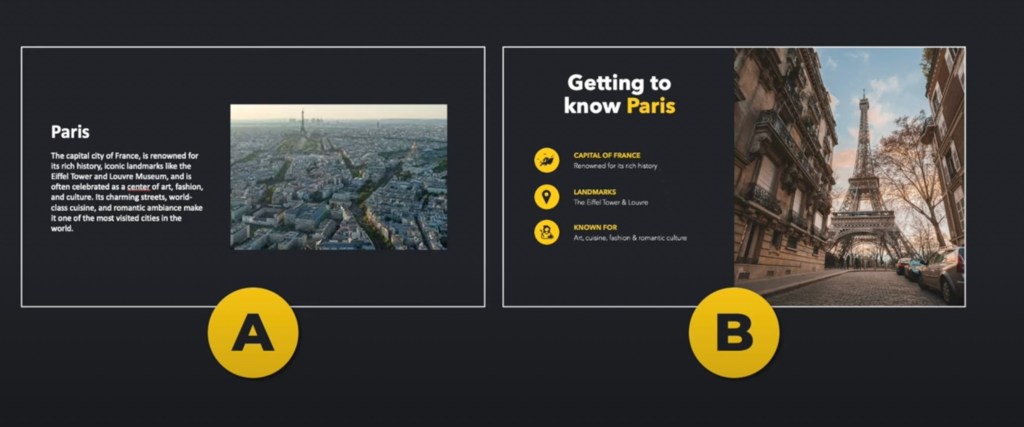 - Use PowerPoint as it’s supposed to be used: an image + small amount of text (no complete sentences). DO NOT simply speak what you have written. Use only images to assist the viewers to take in the message