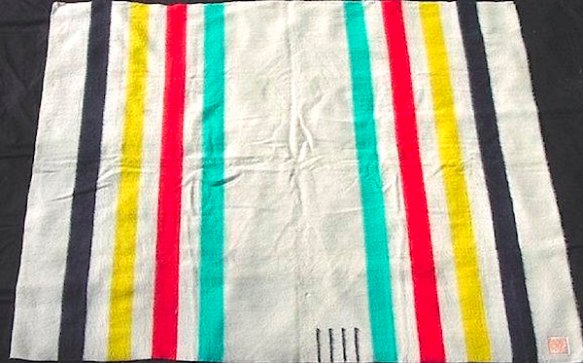 The HB Point Blanket was (and still is) manufactured in England and was one item that the Native Americans desired, as wool is more pliable than leather and insulates even when wet. The points – or small lines – stitched into the blanket denote its size, such that traders could make deals without unfolding and measuring the blanket. Traders could also measure the length of other objects along the side when the blanket was used as a surface of exchange. The Hudson Bay Point Blanket has achieved iconic status today in Canada as a symbol of the history of trade relations between First Peoples and Europeans. Canadian universities, for example, still give First Nation graduates a point blanket.